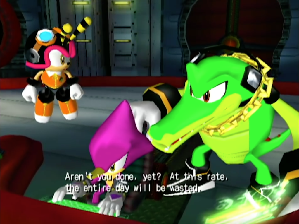 Instead, this is a bad post that is going to be a fairly directionless. I’m realizing now that I really don’t have all that much to say. And not having the ability to insert pictures to punctuate my thoughts scares me. So before we jump into what is going to more or less be a rant about how much I dislike Bone-In wings, enjoy this picture of team Chaotix from Sonic Heroes.