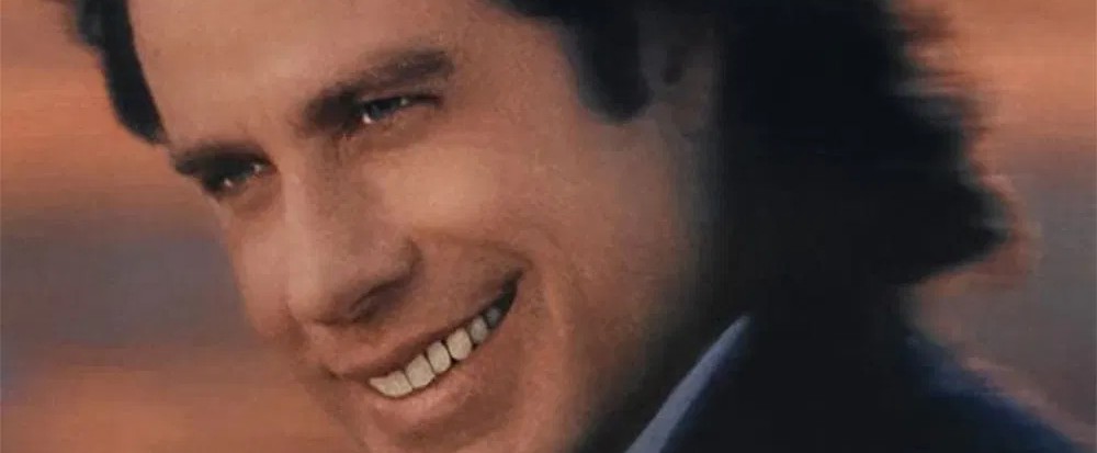 This is one of the funniest images on the planet to me. The blurriness of everything besides Travolta’s face, with a smile that’s somewhere between Cheshire Cat and The Joker. The insane mullet, swept back as though he’s coming for you at dangerous speeds. The comically out of place dog in the bottom corner, looking like an artifact from a previously scrapped design. The 3 bespoke feathers, each of a different size, floating behind his head, above the letter “E” as though representing an accent mark, and in the dog’s mouth.